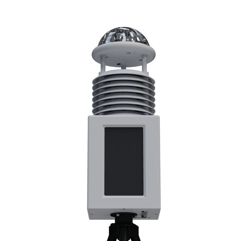 该设备采用十要素一体式传感器,可对风速、风向、空气温度、湿度、大气压力、光照、光学雨量、pm2.5、pm10、噪声等气象要素进行实时观测,传感器外壳采用进口ABS材质,更有效对抗盐雾等环境,防护等级达到IP65以上。