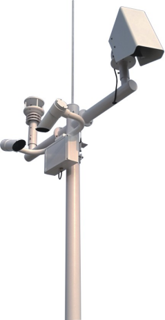 交通气象监测站采用的气象传感器包括:能见度天气现象检测仪、风湿温压雨一体化微型气象站、激光遥感式路面状况检测仪等,还包括专用综合气象数据采集器、支撑结构、供电通信控制箱等单元。